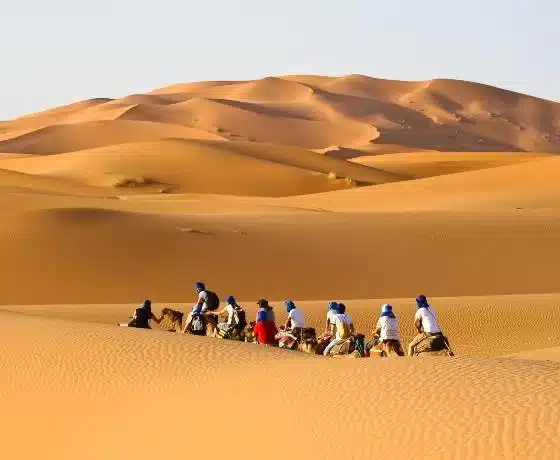 • Ride camels through the Merzouga dunes and explore remote desert areas.