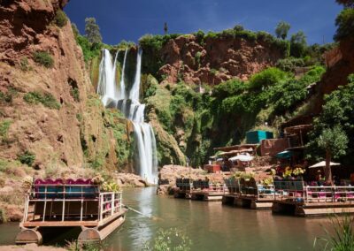 Depart Marrakech in the morning for a scenic drive through the foothills of the High Atlas Mountains, passing traditional Berber villages, terraced olive groves, and rolling hills that offer a glimpse of rural Moroccan life. As you ascend into the mountains, the landscape becomes increasingly dramatic, with deep valleys, rugged cliffs, and winding roads leading toward the waterfalls. Along the way, your guide shares stories about the local culture, the history of the region, and life in the mountain communities, enriching the journey with context and insight.